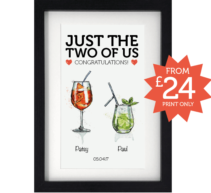 Make the perfect keepsake of their big day. These just for two A4 wedding designs make a great gift with a choice of print only or framed. A great anniversary reminder too!